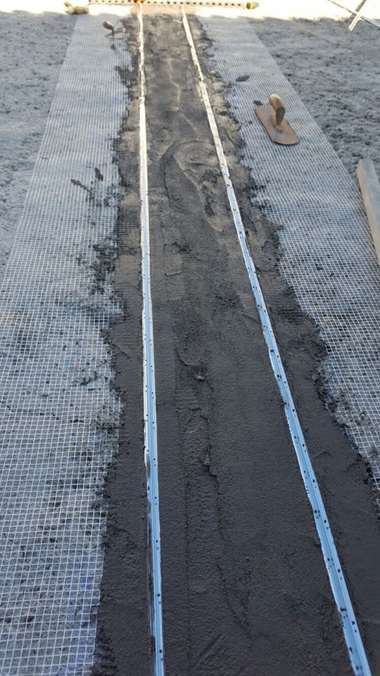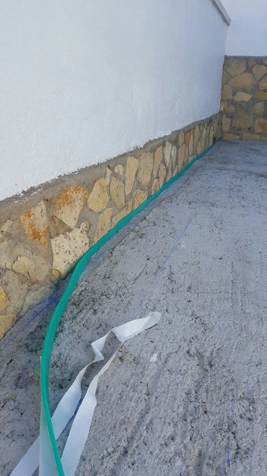 En primer lugar se hace una cenefa con acabado de adoquin