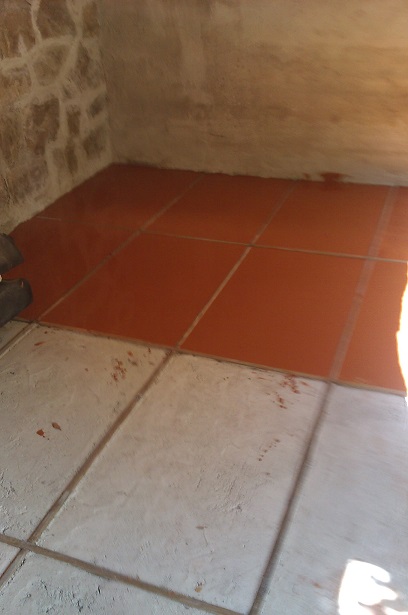 Suelo de Porche realizado con Pavistamp Floor color Teja