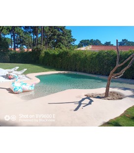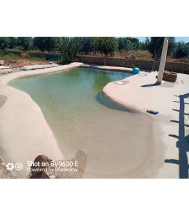 Our Beach Feel System Kits for sand coating for beach-type swimming pools include all the necessary products for direct pressure waterproofing, sand and binder for the coating and polyurethane solvent for sealing the protection of the swimming pool.